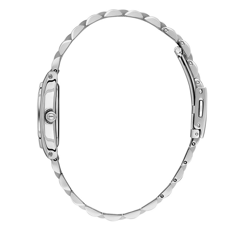 ساعت زنانه دنیل کلین مدل DK.1.13870-3 با ترکیب رنگی چشمنوازِ نقرهای–بوردو، برای استایلهای روزمره، اداری و مجلسی طراحی شده است. قاب مستطیلیِ ظریف با بند تماماستیل، ظاهر مینیمال و شیکی میسازد که روی مچهای باریک بسیار خوشفرم مینشیند. این مدل از موتور کوارتز ژاپنی بهره میبرد و تا 3ATM در برابر آب مقاوم است. رنگ صفحه بوردو و رنگ قاب/بند نقرهای است.